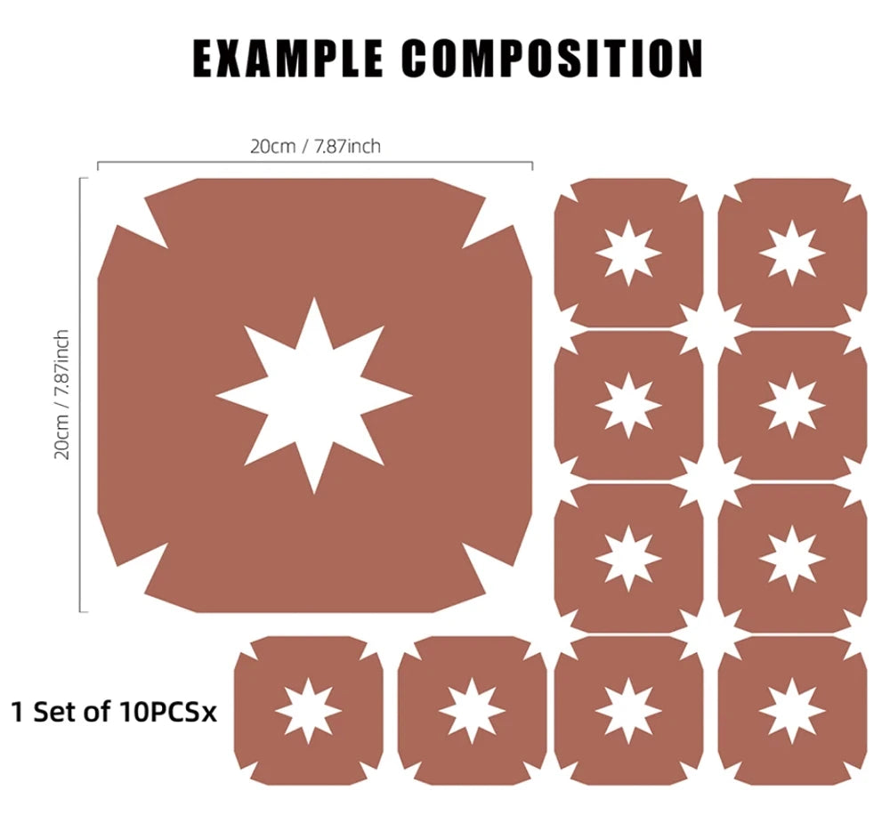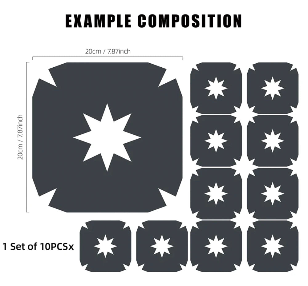 - Product Size: 7.87"x7.87" (20cmx20cm) - Set of 10 pieces. Please note, these are decorative stickers, not thick, real tiles.