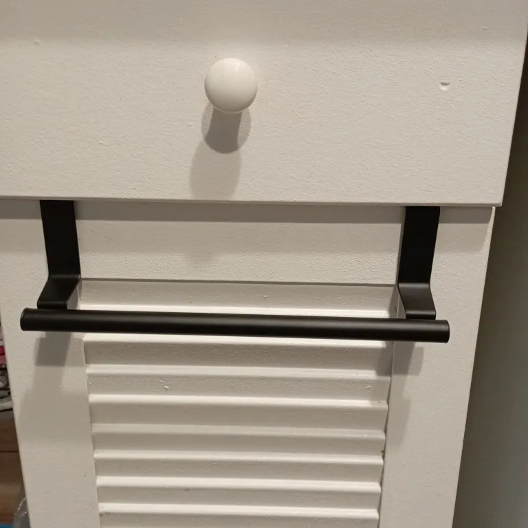 This towel holder is designed for effortless over-the-door hanging, requiring no tools or permanent fixtures. Simply place it over your cabinet or bathroom door for instant organization.