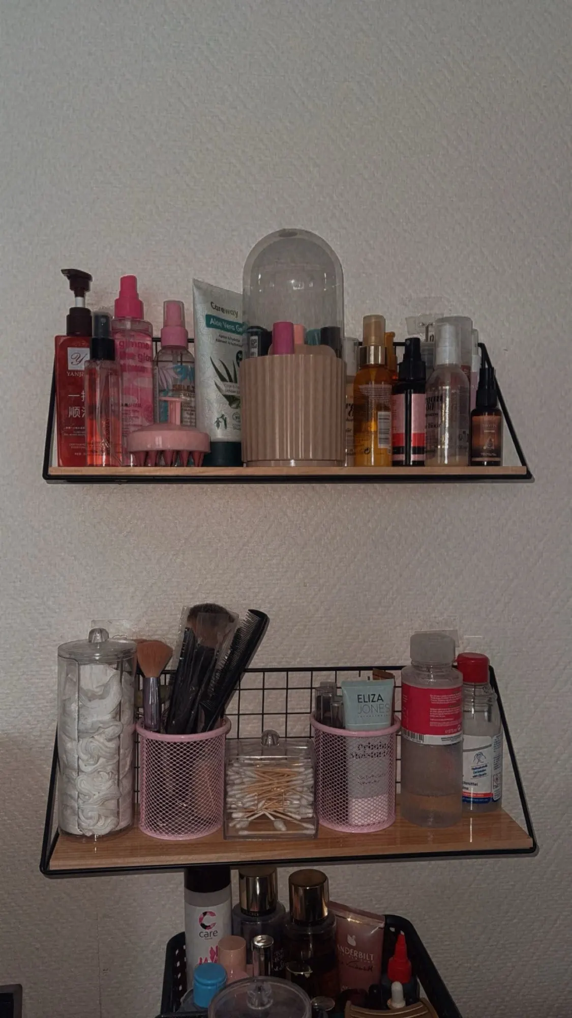 Elevate your space with our stylish floating shelf, blending natural wood tones with a sleek metal frame. Perfect for adding a touch of Scandinavian calm to any room, it offers versatile storage without damaging your walls.
